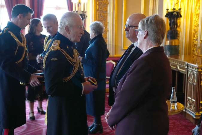 Mr. Eamonn McNulty (Brother) receives the Elizabeth Emblem from King Charles III at Windsor Castle, Berkshire, for Detective Constable Patrick McNulty, Picture date: Wednesday November 12, 2025., Credit:Jonathan Brady / Avalon