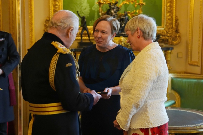 Mrs. Elaine Bell (Daughter) receives the Elizabeth Emblem from King Charles III at Windsor Castle, Berkshire, for Reserve Constable James Ferguson, Picture date: Wednesday November 12, 2025., Credit:Jonathan Brady / Avalon