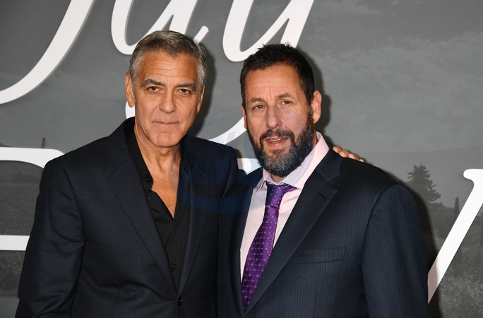 LOS ANGELES, CALIFORNIA - NOVEMBER 11: (L-R) George Clooney and Adam Sandler at the Los Angeles premiere of Netflix's "Jay Kelly" at The Egyptian Theatre Hollywood on November 11, 2025 in Los Angeles, California., Credit:Jeffrey Mayer / Avalon