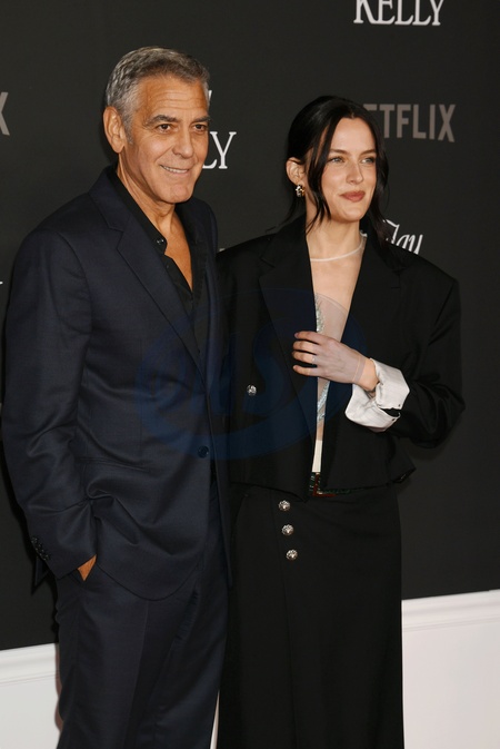 LOS ANGELES, CALIFORNIA - NOVEMBER 11: (L-R) George Clooney and Riley Keough at the Los Angeles premiere of Netflix's "Jay Kelly" at The Egyptian Theatre Hollywood on November 11, 2025 in Los Angeles, California., Credit:Jeffrey Mayer / Avalon