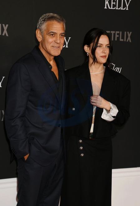 LOS ANGELES, CALIFORNIA - NOVEMBER 11: (L-R) George Clooney and Riley Keough at the Los Angeles premiere of Netflix's "Jay Kelly" at The Egyptian Theatre Hollywood on November 11, 2025 in Los Angeles, California., Credit:Jeffrey Mayer / Avalon