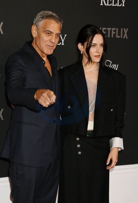 LOS ANGELES, CALIFORNIA - NOVEMBER 11: (L-R) George Clooney and Riley Keough at the Los Angeles premiere of Netflix's "Jay Kelly" at The Egyptian Theatre Hollywood on November 11, 2025 in Los Angeles, California., Credit:Jeffrey Mayer / Avalon