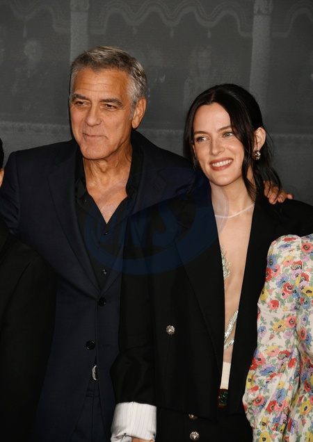 LOS ANGELES, CALIFORNIA - NOVEMBER 11: (L-R) George Clooney and Riley Keough at the Los Angeles premiere of Netflix's "Jay Kelly" at The Egyptian Theatre Hollywood on November 11, 2025 in Los Angeles, California., Credit:Jeffrey Mayer / Avalon