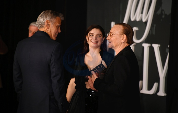 LOS ANGELES, CALIFORNIA - NOVEMBER 11: George Clooney, Eve Hewson and Bono at the Los Angeles premiere of Netflix's "Jay Kelly" at The Egyptian Theatre Hollywood on November 11, 2025 in Los Angeles, California., Credit:Jeffrey Mayer / Avalon