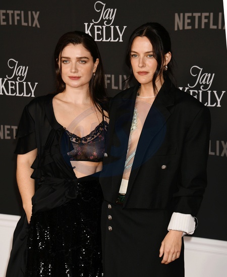 LOS ANGELES, CALIFORNIA - NOVEMBER 11: (L-R) Eve Hewson and Riley Keough at the Los Angeles premiere of Netflix's "Jay Kelly" at The Egyptian Theatre Hollywood on November 11, 2025 in Los Angeles, California., Credit:Jeffrey Mayer / Avalon