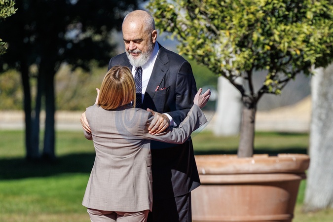 Arrivals at the Italy-Albania Intergovernmental Summit. Pictured are Prime Minister Giorgia Meloni and Albanian Prime Minister Edi Rama. in Rome, Villa Pamphili, on Nov 13th 2025, Credit:Francesco Fotia/AGF / Avalon