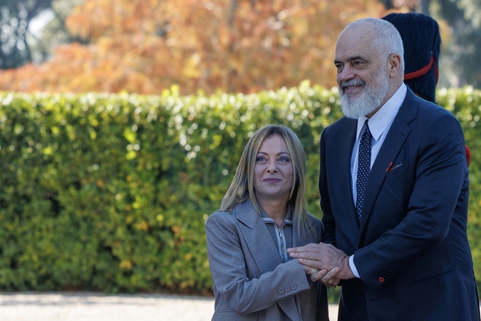 Arrivals at the Italy-Albania Intergovernmental Summit. Pictured are Prime Minister Giorgia Meloni and Albanian Prime Minister Edi Rama. in Rome, Villa Pamphili, on Nov 13th 2025, Credit:Francesco Fotia/AGF / Avalon