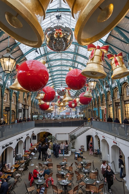 Christmas decorations at Covent garden market. West end of London near Covent Garden area. England.