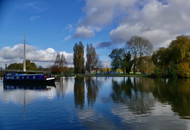 Blue skies above The River Thames on a sunny, autumnal afternoon by the river at Christchurch Meadows in Caversham., Credit:Geoffrey Swaine / Avalon