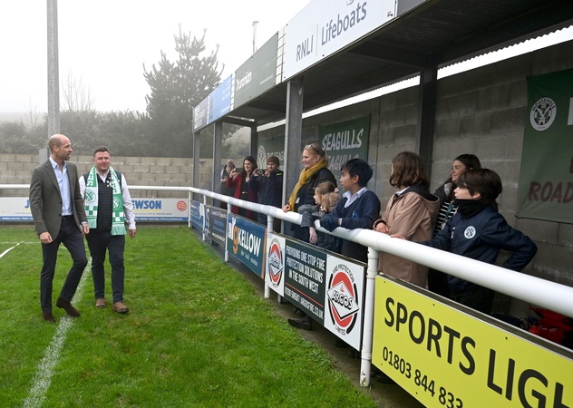 Prince William, Prince of Wales, Duke of Cornwall meets fans and well-wishers during his visit to Mousehole AFC, where he opened a new access road to the club's ground and facilities on November 13, 2025 in Mousehole, England., Credit:Avalon.red / Avalon
