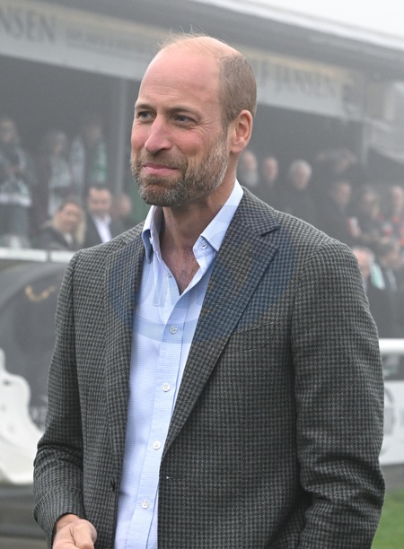 Prince William, Prince of Wales, Duke of Cornwall speaks with players from the adult team and hears about the difference the new road has made during his visit to Mousehole AFC, where he opened a new access road to the club's ground and facilities on November 13, 2025 in Mousehole, England., Credit:Avalon.red / Avalon