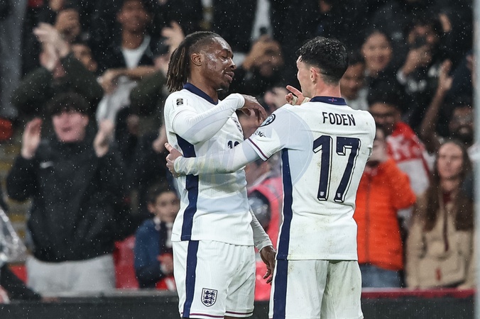 Eberechi Eze of England celebrates his goal to make it 2-0 during the FIFA World Cup Qualifiers round 9 match England vs Serbia at Wembley Stadium, London, United Kingdom, 13th November 2025, Credit:Ae Cosgrove/News Images / Avalon