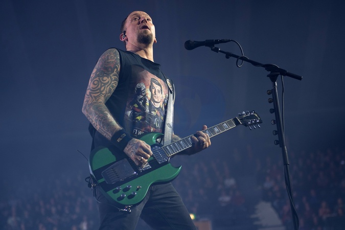 Lead singer Michael Poulsen of Danish rock/metal band Volbeat performs at OVO Arena Wembley, London, England, UK on Thursday 13 November 2025., Credit:Justin Ng / Avalon