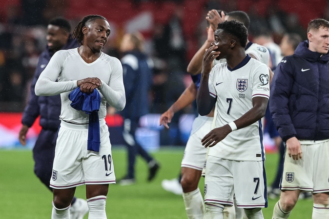 Eberechi Eze of England and Bukayo Saka of England after the final whistle during the FIFA World Cup Qualifiers round 9 match England vs Serbia at Wembley Stadium, London, United Kingdom, 13th November 2025, Credit:Ae Cosgrove/News Images / Avalon
