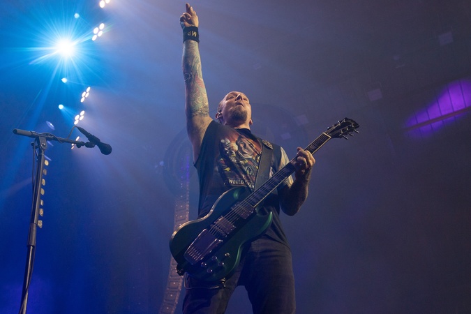 Lead singer Michael Poulsen of Danish rock/metal band Volbeat performs at OVO Arena Wembley, London, England, UK on Thursday 13 November 2025., Credit:Justin Ng / Avalon