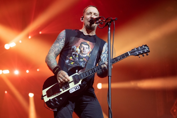 Lead singer Michael Poulsen of Danish rock/metal band Volbeat performs at OVO Arena Wembley, London, England, UK on Thursday 13 November 2025., Credit:Justin Ng / Avalon