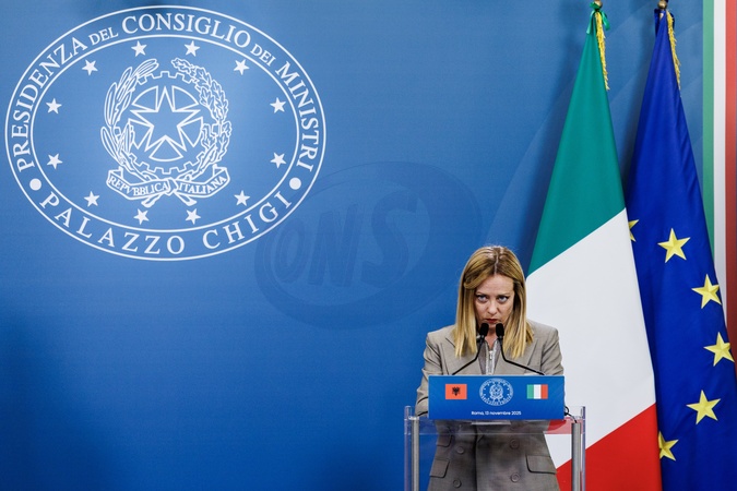 13/11/2025 Rome, Villa Pamphili, Statements at the end of the Italy-Albania Intergovernmental Summit. Pictured is the Prime Minister Giorgia Meloni., Credit:/AGF / Avalon