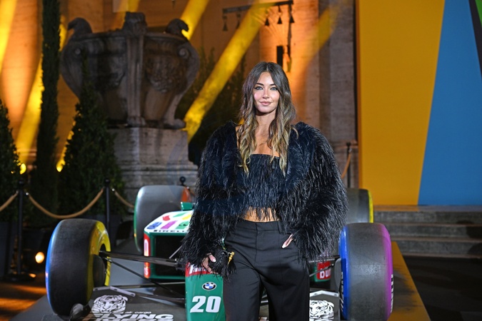 November 13, 2025, Rome. Sky presents the premiere of the Benetton Formula documentary. Pictured is Greta Zuccarello, one of the teachers from "L'Eredità.", Credit:/AGF / Avalon