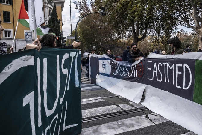 Nomeloniday, student protest for Palestine, against climate change, and against the government. The march departs from Piramide and heads toward the Ministry of Education and Merit, on Viale Trastevere. Rome, Italy 14 November 2025, Credit:Francesca Bolla / Avalon