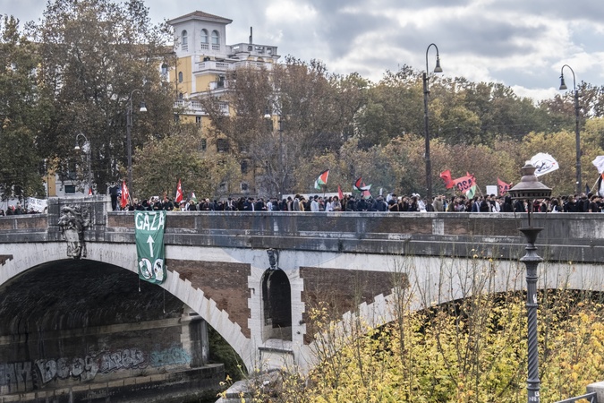 Nomeloniday, student protest for Palestine, against climate change, and against the government. The march departs from Piramide and heads toward the Ministry of Education and Merit, on Viale Trastevere. Rome, Italy 14 November 2025, Credit:Francesca Bolla / Avalon
