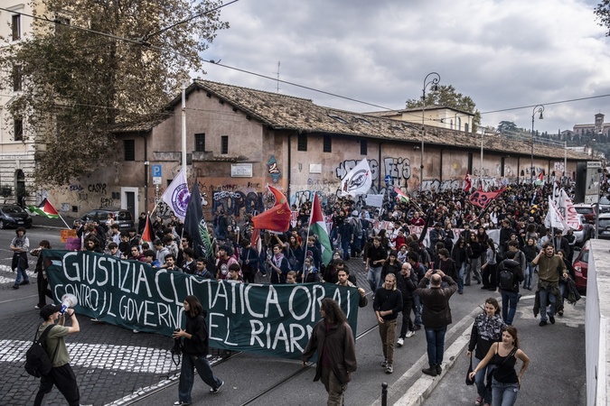 Nomeloniday, student protest for Palestine, against climate change, and against the government. The march departs from Piramide and heads toward the Ministry of Education and Merit, on Viale Trastevere. Rome, Italy 14 November 2025, Credit:Francesca Bolla / Avalon