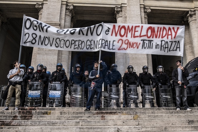 Nomeloniday, student protest for Palestine, against climate change, and against the government. The march departs from Piramide and heads toward the Ministry of Education and Merit, on Viale Trastevere. Rome, Italy 14 November 2025, Credit:Francesca Bolla / Avalon