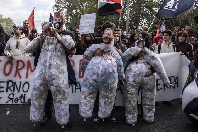Nomeloniday, student protest for Palestine, against climate change, and against the government. The march departs from Piramide and heads toward the Ministry of Education and Merit, on Viale Trastevere. Rome, Italy 14 November 2025, Credit:Francesca Bolla / Avalon