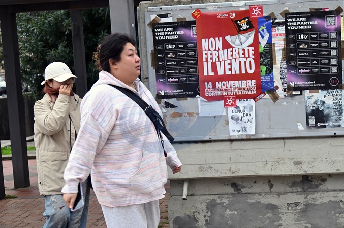A student strike, promoted by Fridays for Future and the Student Union, involves all Italian schools, their staff, and their students. From Milan to Turin and from Rome to Naples, young people are taking to the streets to demand "a new education, with the Valditara school and Bernini University, for a free Palestine, for a new world." The protest also calls for changes to address the climate emergency. Florence, Italy 14 November 2025, Credit:Aleandro Biagianti / Avalon