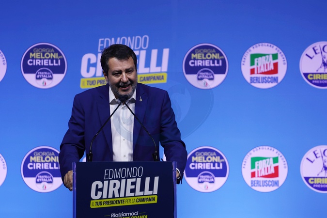 Closure of the center-right electoral campaign for the regional elections in Campania, in the photo, the Minister of Transport, Matteo Salvini . Naples, Italy 14 November 2025, Credit:Fabio Sasso / Avalon