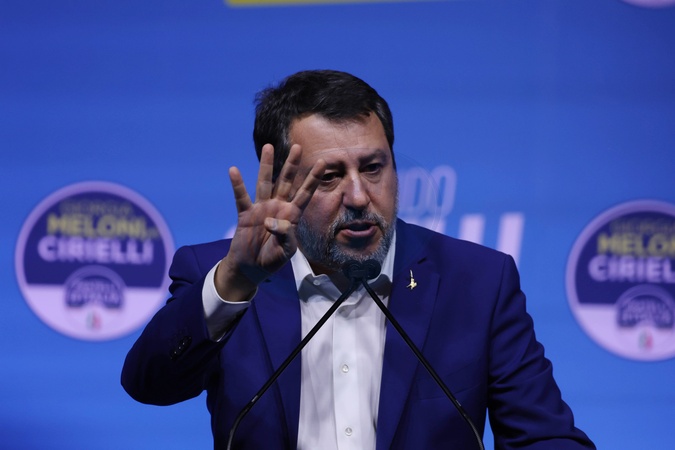Closure of the center-right electoral campaign for the regional elections in Campania, in the photo, the Minister of Transport, Matteo Salvini . Naples, Italy 14 November 2025, Credit:Fabio Sasso / Avalon