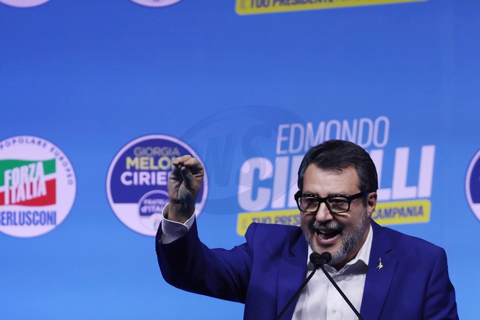 Closure of the center-right electoral campaign for the regional elections in Campania, in the photo, the Minister of Transport, Matteo Salvini . Naples, Italy 14 November 2025, Credit:Fabio Sasso / Avalon