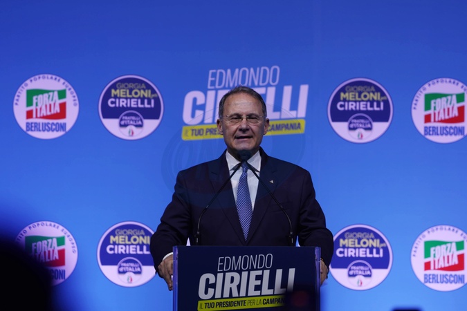 November 14, 2025, Naples, closing of the center-right electoral campaign for the Campania regional elections. Pictured is candidate Edmondo Cirielli. . Naples, Italy 14 November 2025, Credit:Fabio Sasso / Avalon