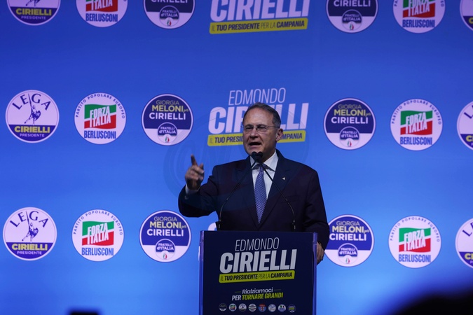 November 14, 2025, Naples, closing of the center-right electoral campaign for the Campania regional elections. Pictured is candidate Edmondo Cirielli. . Naples, Italy 14 November 2025, Credit:Fabio Sasso / Avalon