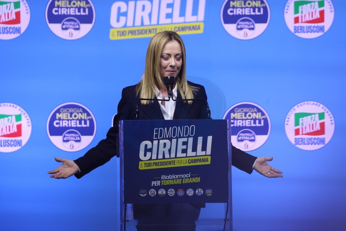 Closure of the center-right electoral campaign for the regional elections in Campania, in the photo, Prime Minister Giorgia Meloni, Credit:Fabio Sasso / Avalon