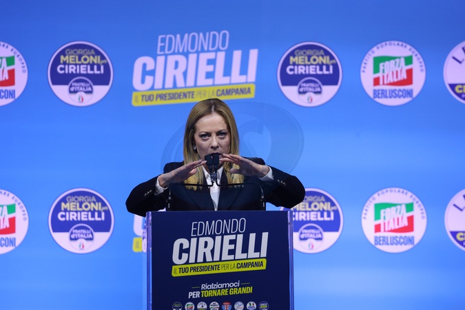 Closure of the center-right electoral campaign for the regional elections in Campania, in the photo, Prime Minister Giorgia Meloni, Credit:Fabio Sasso / Avalon