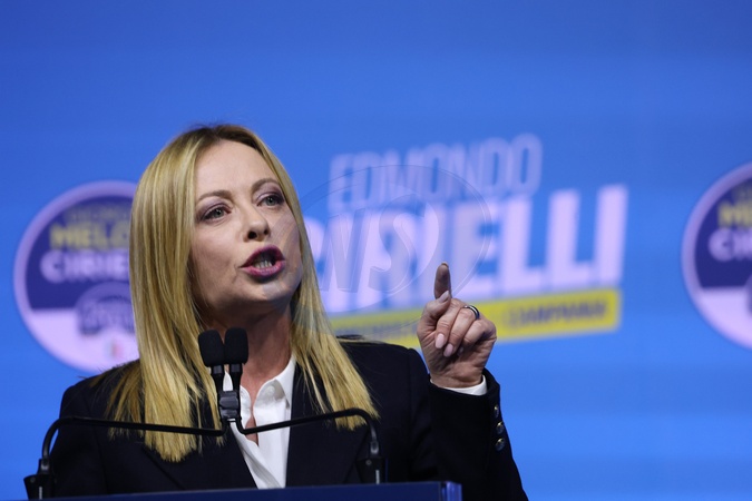Closure of the center-right electoral campaign for the regional elections in Campania, in the photo, Prime Minister Giorgia Meloni, Credit:Fabio Sasso / Avalon
