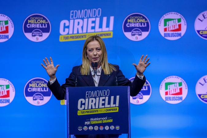 Closure of the center-right electoral campaign for the regional elections in Campania, in the photo, Prime Minister Giorgia Meloni, Credit:Fabio Sasso / Avalon