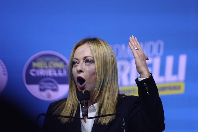 Closure of the center-right electoral campaign for the regional elections in Campania, in the photo, Prime Minister Giorgia Meloni, Credit:Fabio Sasso / Avalon