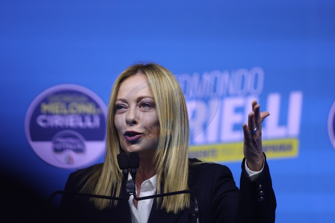 Closure of the center-right electoral campaign for the regional elections in Campania, in the photo, Prime Minister Giorgia Meloni, Credit:Fabio Sasso / Avalon