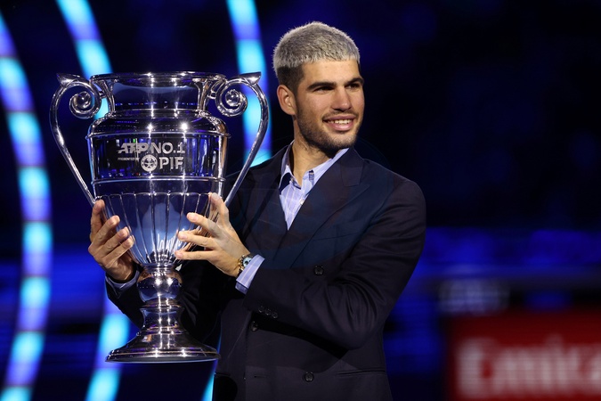 2025 Nitto ATP Finals. Pictured is Carlos Alcaraz receiving the 2025 ATP No. 1 ranking trophy. Turin, Italy 14 November 2025, Credit:Marco Canoniero / Avalon