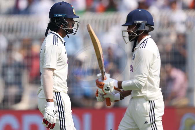 KL Rahul of India heading towards dressing room and Rishabh Pant (Vice Captain) of India entering the field of play during the IDFC First Bank Test Day 2 India vs South Africa at Eden Gardens, Kolkata, India, 15th November 2025, Credit:Shubhajit Roy Karmakar/News Images / Avalon
