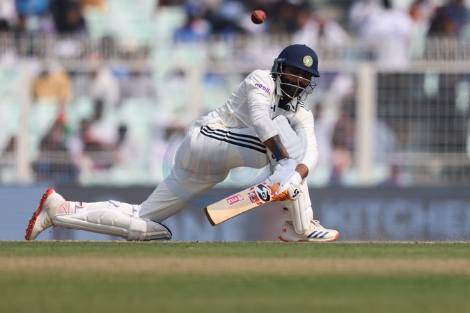 Ravindra Jadeja of India in action during the IDFC First Bank Test Day 2 India vs South Africa at Eden Gardens, Kolkata, India, 15th November 2025, Credit:Shubhajit Roy Karmakar/News Images / Avalon