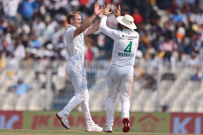 Corbin Bosch Of South Africa takes the wicket of Rishabh Pant (Vice Captain) of India during the IDFC First Bank Test Day 2 India vs South Africa at Eden Gardens, Kolkata, India, 15th November 2025, Credit:Shubhajit Roy Karmakar/News Images / Avalon