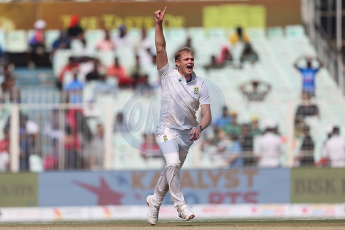 Corbin Bosch Of South Africa during the IDFC First Bank Test Day 2 India vs South Africa at Eden Gardens, Kolkata, India, 15th November 2025, Credit:Shubhajit Roy Karmakar/News Images / Avalon