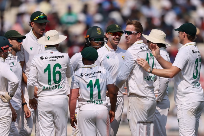 Simon Harmer Of South Africa dismisses Dhruv Jurel of India during the IDFC First Bank Test Day 2 India vs South Africa at Eden Gardens, Kolkata, India, 15th November 2025, Credit:Shubhajit Roy Karmakar/News Images / Avalon