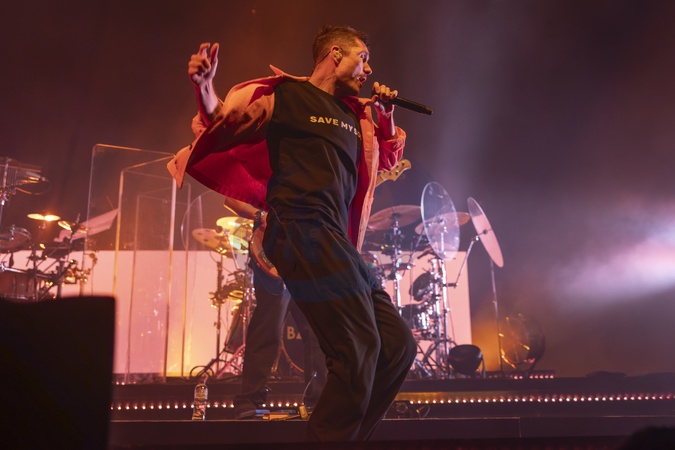 Singer Dan Smith of British Indie band Bastille performs at AO Arena, Manchester, England, 14th November 2025, Credit:Mike Gray / Avalon
