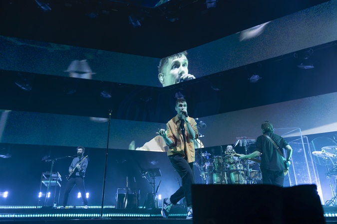 Singer Dan Smith of British Indie band Bastille performs at AO Arena, Manchester, England, 14th November 2025, Credit:Mike Gray / Avalon