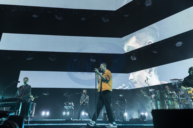Singer Dan Smith of British Indie band Bastille performs at AO Arena, Manchester, England, 14th November 2025, Credit:Mike Gray / Avalon