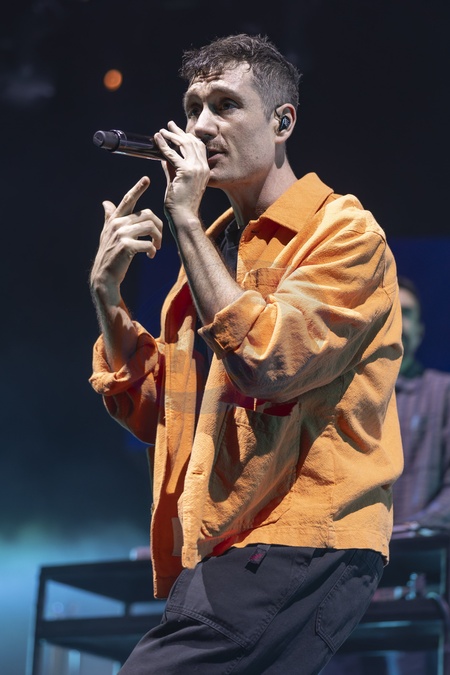 Singer Dan Smith of British Indie band Bastille performs at AO Arena, Manchester, England, 14th November 2025, Credit:Mike Gray / Avalon
