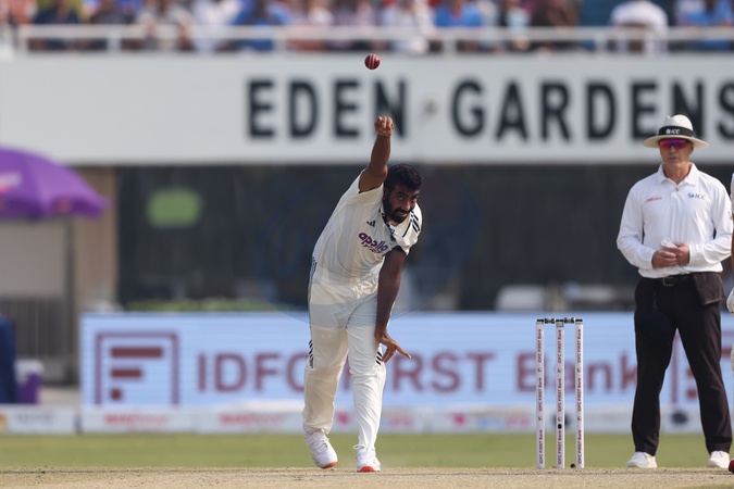 Jasprit Bumrah of India during the IDFC First Bank Test Day 2 India vs South Africa at Eden Gardens, Kolkata, India, 15th November 2025, Credit:Shubhajit Roy Karmakar/News Images / Avalon